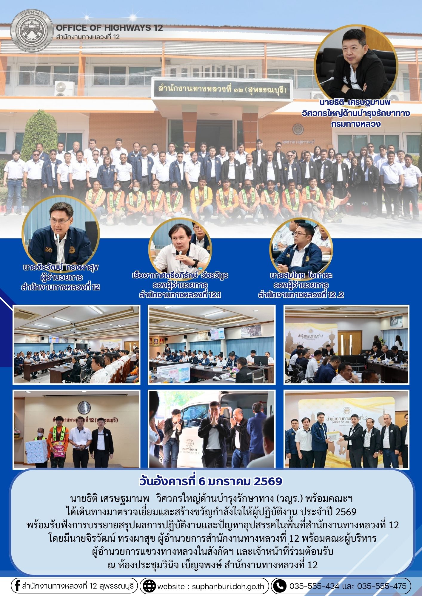 นายธิติ เศรษฐมานพ วิศวกรใหญ่ด้านบำรุงรักษาทาง (วญร.) พร้อมคณะฯ ได้เดินทางมาตรวจเยี่ยมและสร้างขวัญกำลังใจให้ผู้ปฏิบัติงาน ประจำปี 2569