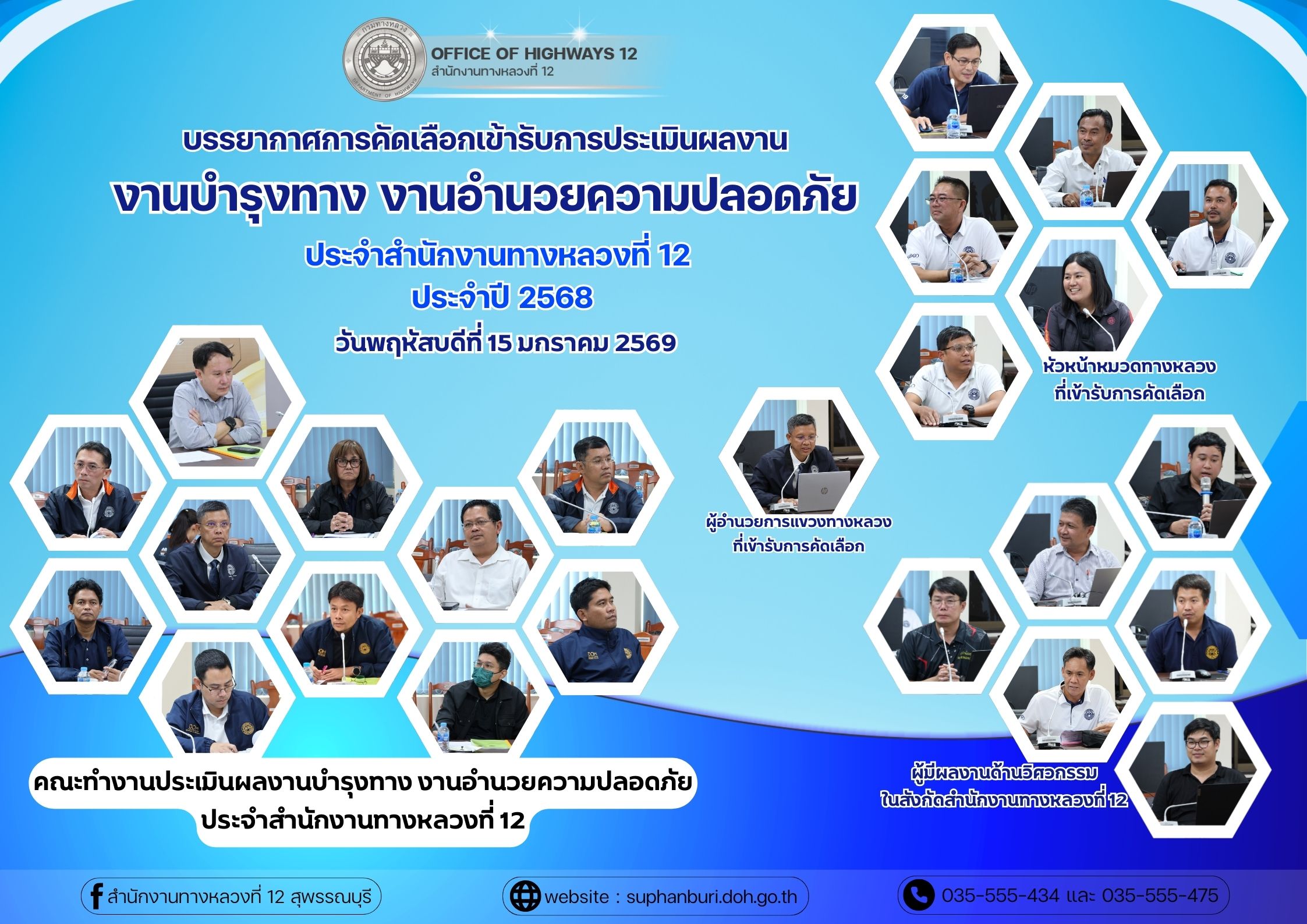 บรรยากาศการคัดเลือกเข้ารับการประเมินผลงานบำรุงทาง งานอำนวยความปลอดภัย ประจำสำนักงานทางหลวงที่ 12 ประจำปี 2568