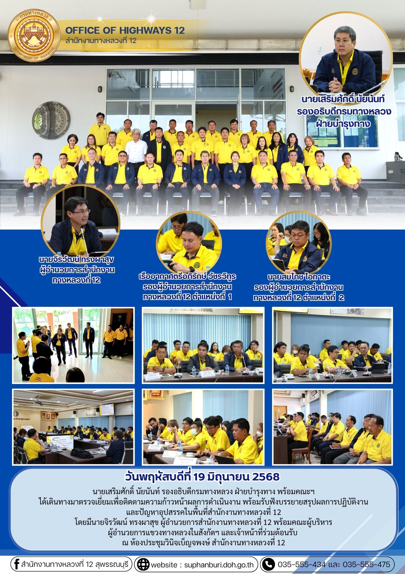 รองอธิบดีกรมทางหลวง ลงพื้นที่ติดตามการดำเนินงานของสำนักงานทางหลวงที่ 12 และแขวงในสังกัด
