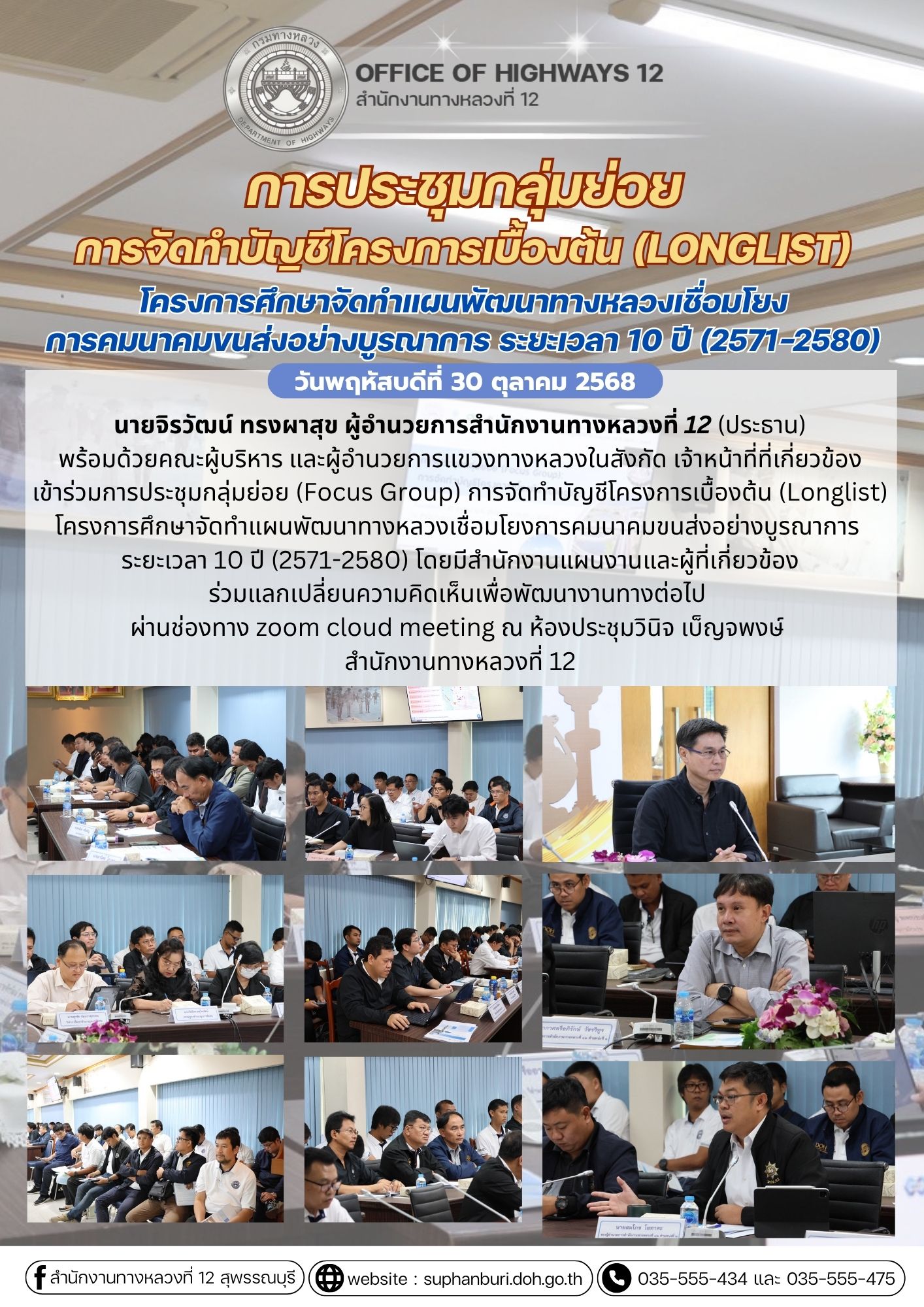 การประชุมกลุ่มย่อยการจัดทำบัญชีโครงการเบื้องต้น (Longlist) โครงการศึกษาจัดทำแผนพัฒนาทางหลวงเชื่อมโยงการคมนาคมขนส่งอย่างบูรณาการ ระยะเวลา 10 ปี (2571-2580)