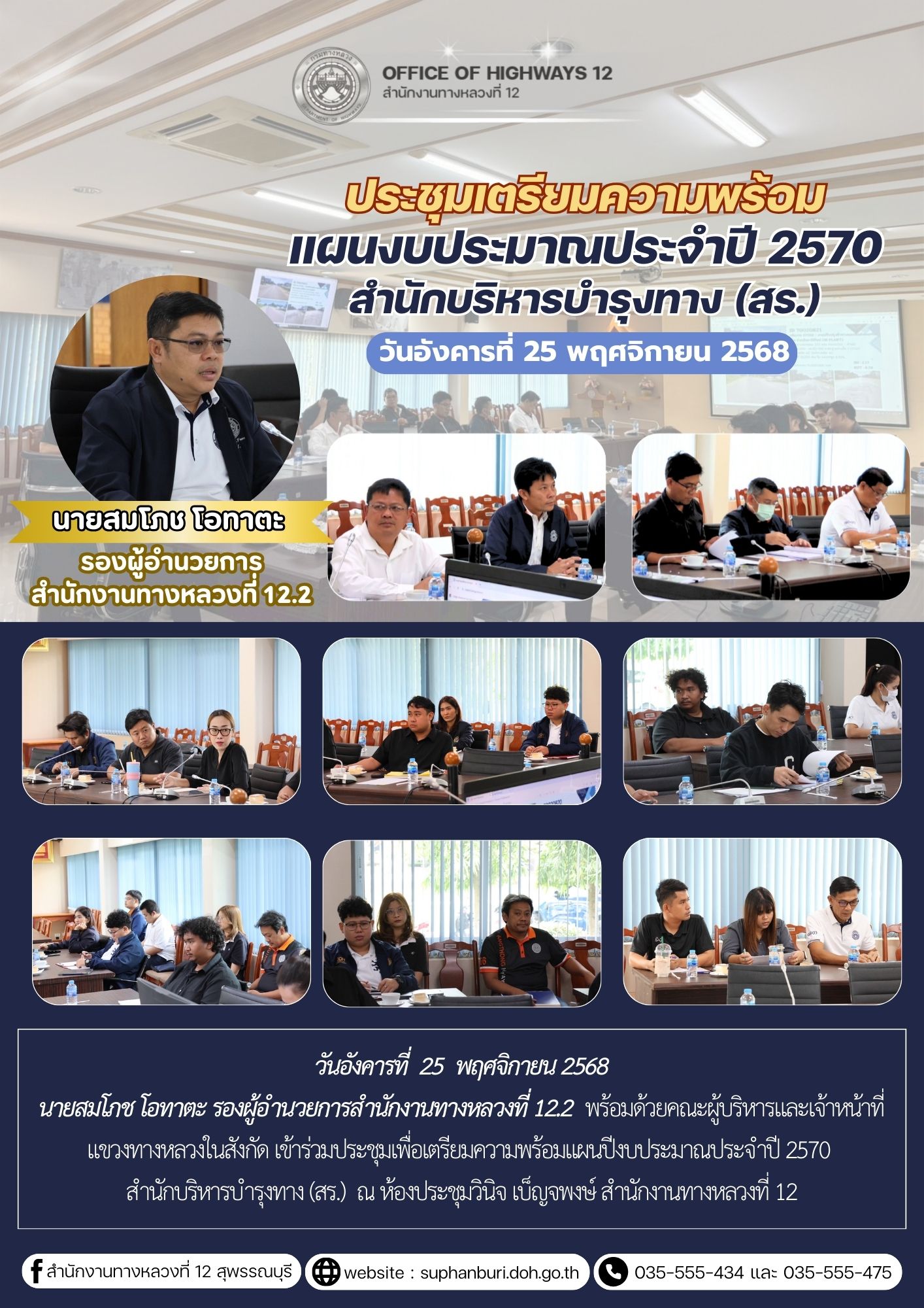 ประชุมเพื่อเตรียมความพร้อมแผนปีงบประมาณประจำปี 2570 สำนักบริหารบำรุงทาง (สร.)