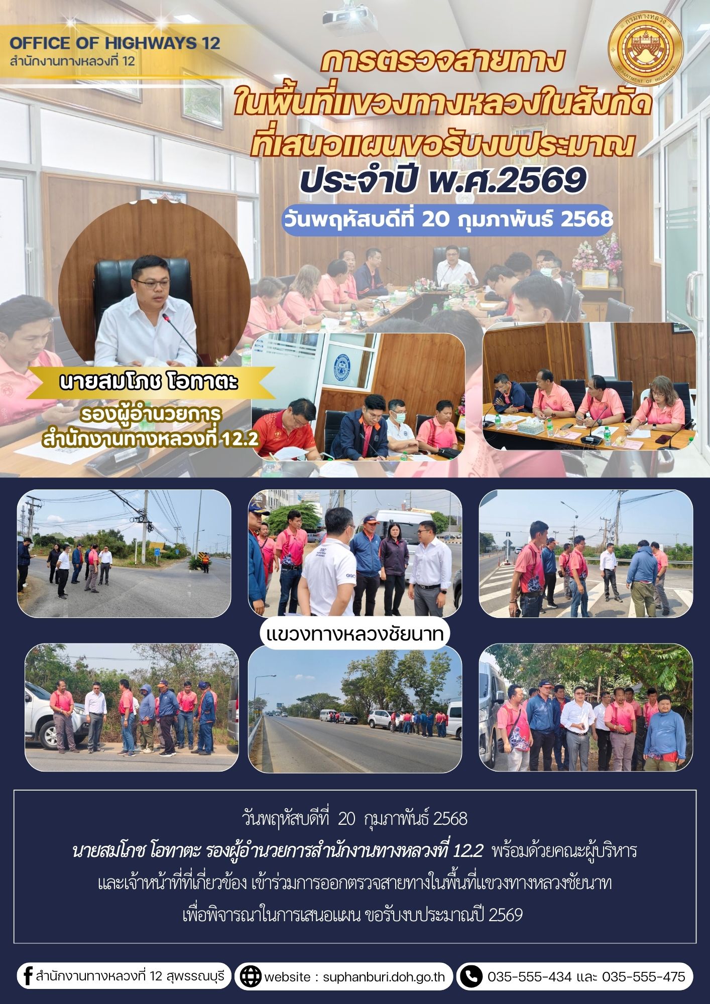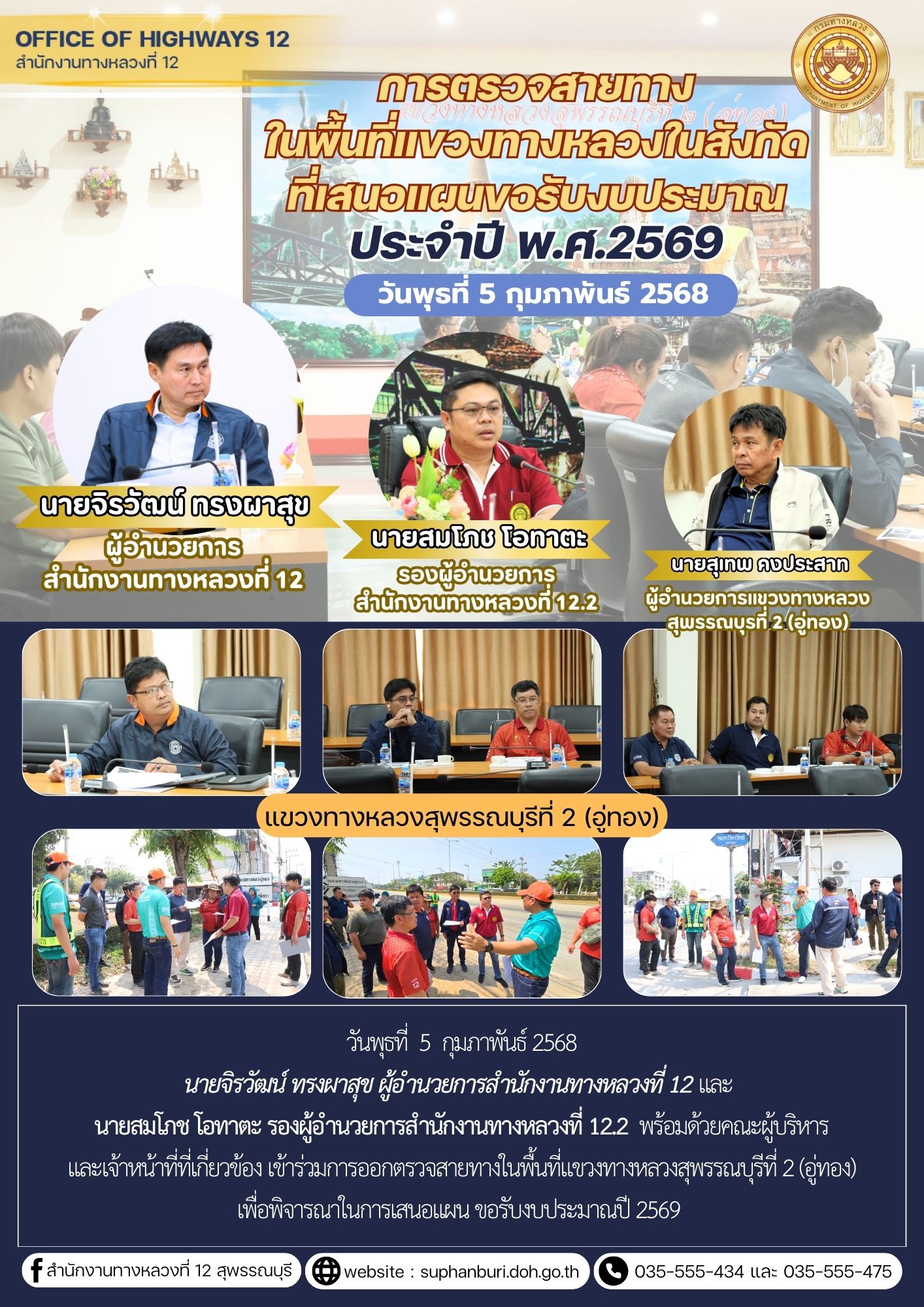 การออกตรวจสายทางในพื้นที่แขวงทางหลวงสุพรรณบุรีที่ 2 (อู่ทอง) เพื่อพิจารณาในการเสนอแผน ขอรับงบประมาณปี 2569