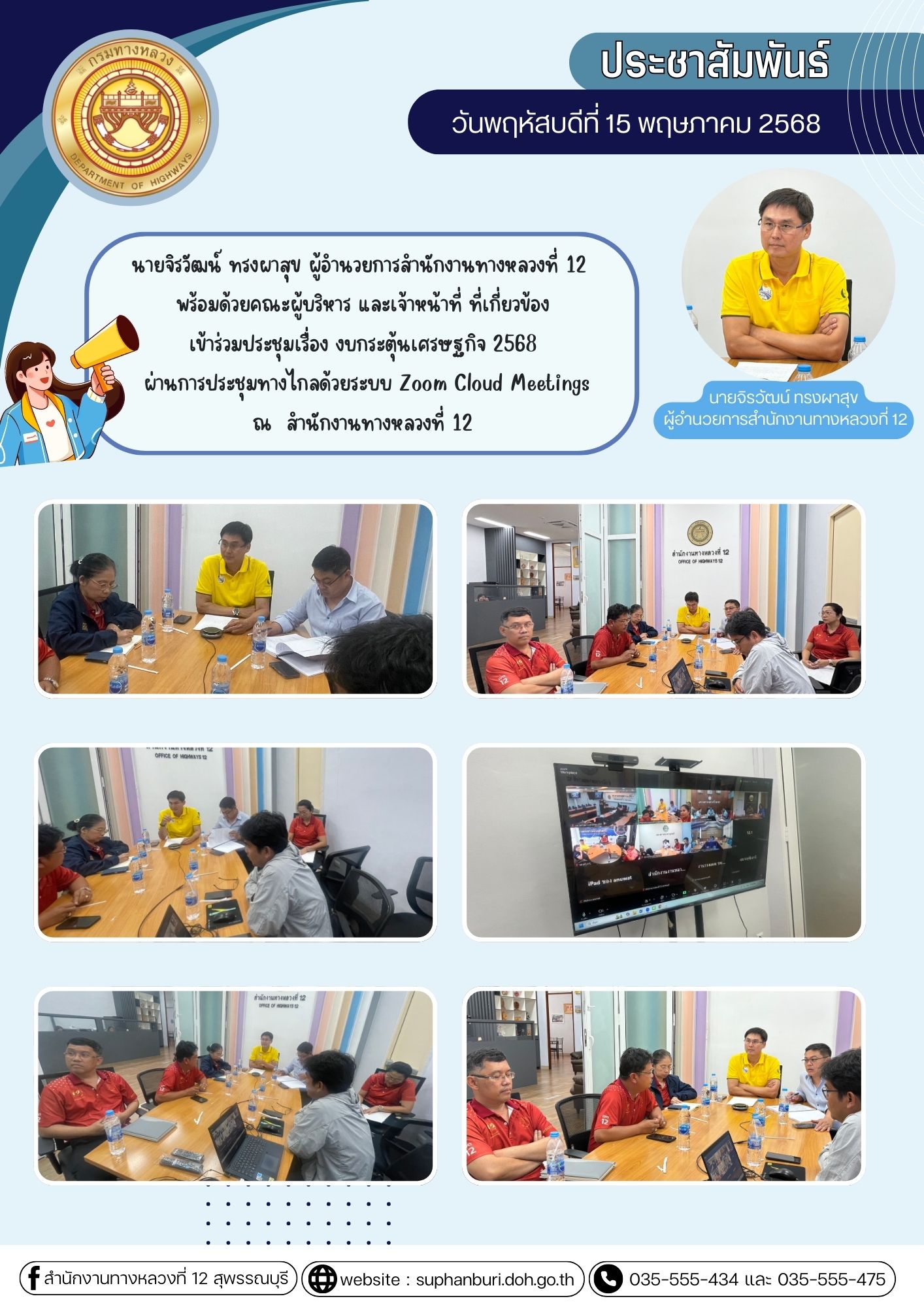 ประชุมเรื่อง งบกระตุ้นเศรษฐกิจ 2568 ผ่านการประชุมทางไกลด้วยระบบ Zoom Cloud Meetings