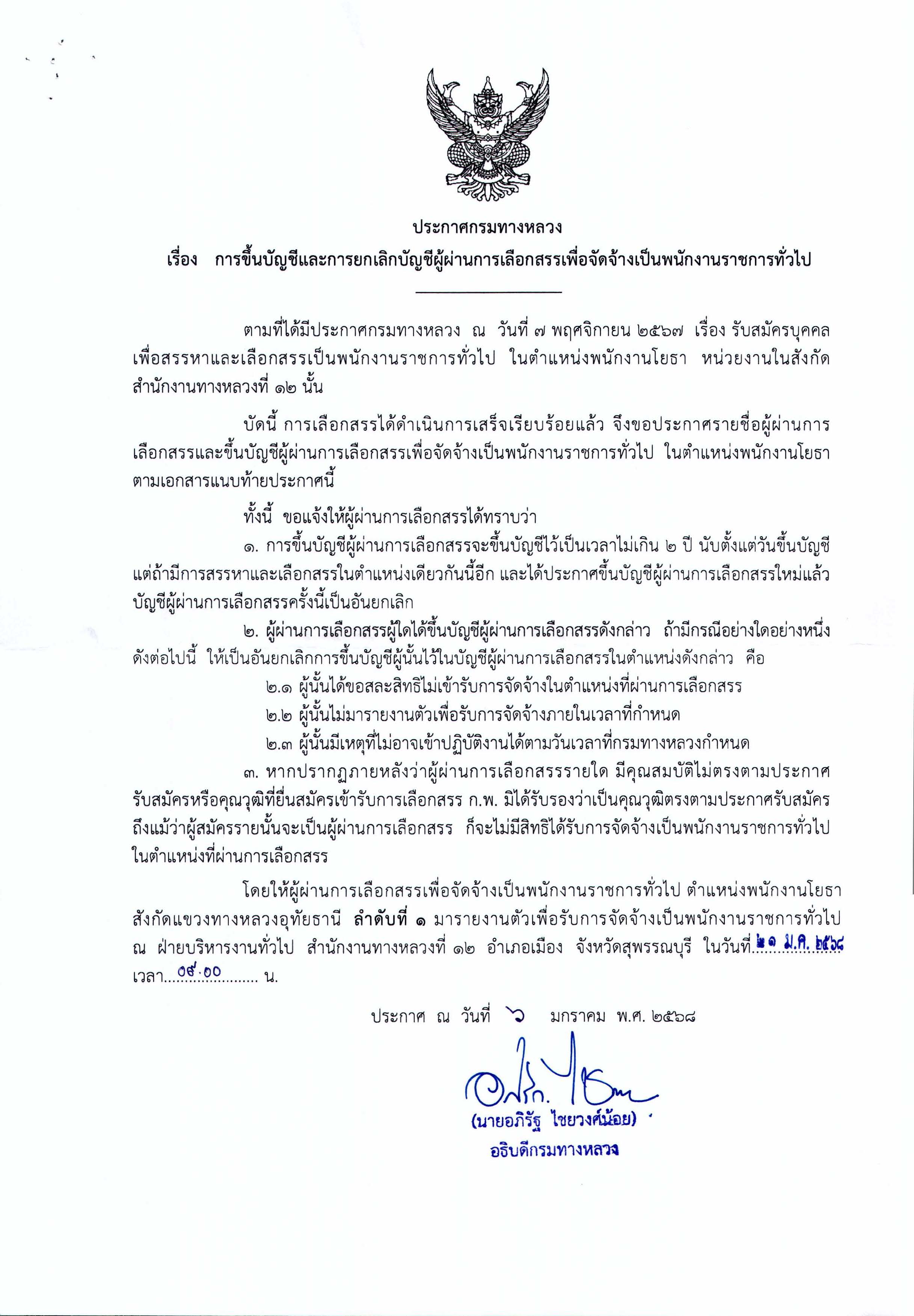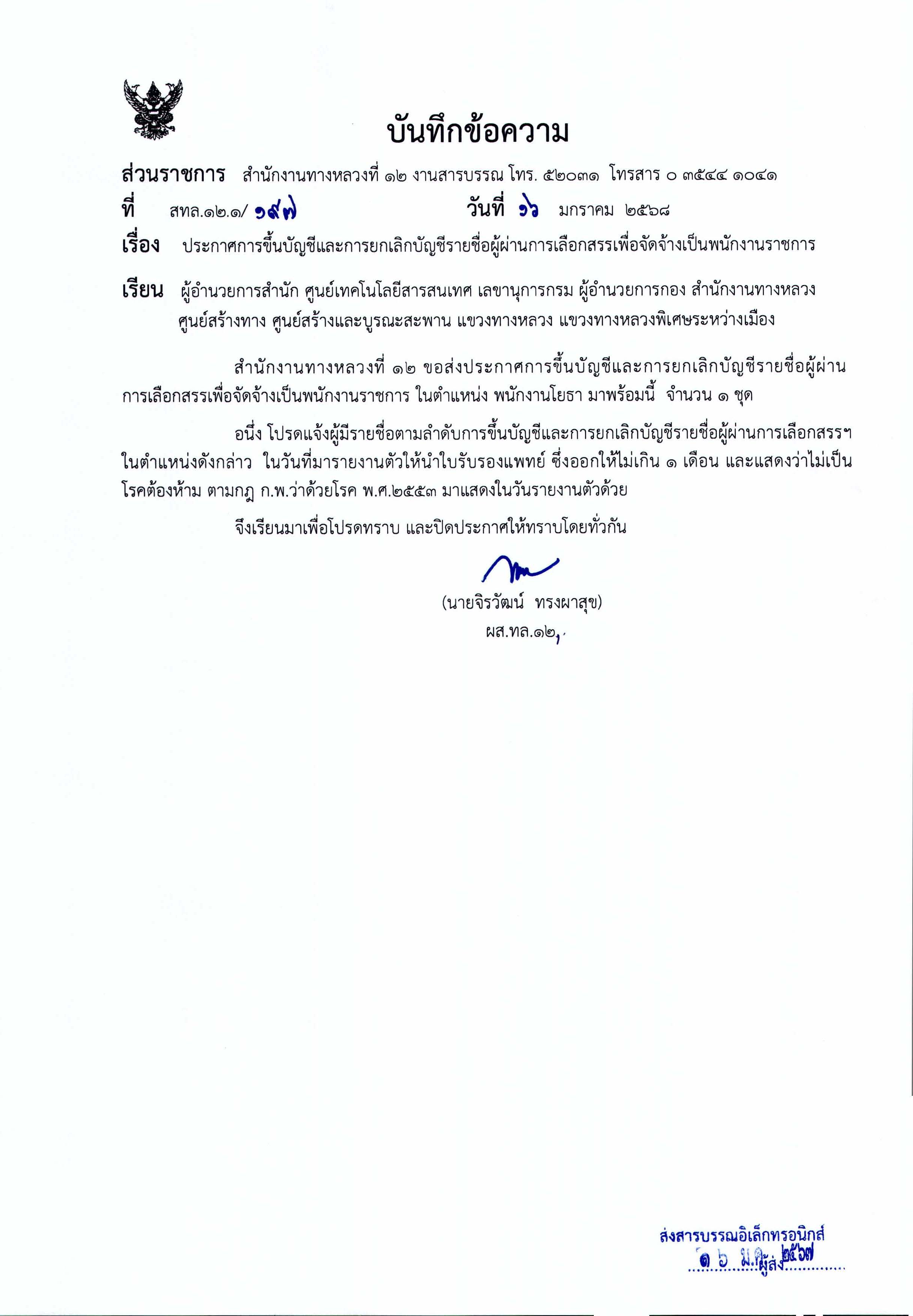 ประกาศการขึ้นบัญชีและการยกเลิกบัญชีรายชื่อผู้ผ่านการเลือกสรร เพื่อจัดจ้างเป็นพนักงานราชการ