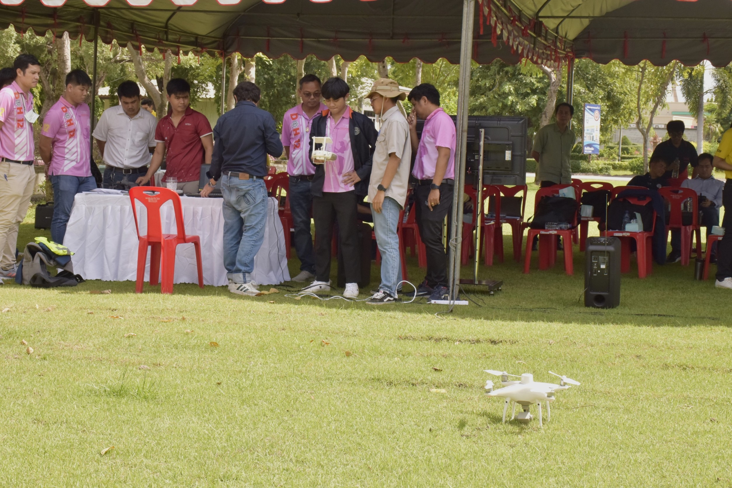 ภาพบรรยากาศการฝึกอบรมเชิงปฏิบัติการใช้อากาศยานไร้คนขับ(Drone) ในโครงการสำรวจและจัดทำระบบบริหารจัดการข้อมูลทรัพย์สินทางหลวงอย่างบูรณาการ ณ สำนักงานทางหลวงที่ 12 สุพรรณบุรี